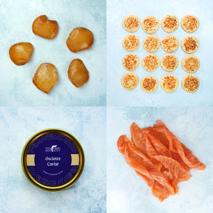 Begin Christmas morning in style with a luxurious selection of FishRJumpin smoked salmon, caviar, and smoked scallops, paired with golden blinis. A truly indulgent start to the festivities.