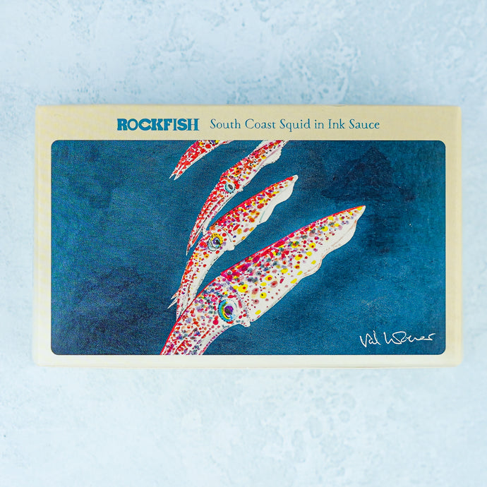Tender, sweet squid caught in season off the South Coast of England and preserved at its best for us in a small cannery in Asturias. It is prepared beautifully by hand and cooked gently in ink sauce to a traditional recipe.