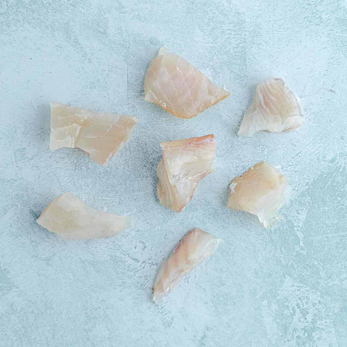 Misshapes are nice pieces of fish that are left over when we make steaks. They're often very irregular shapes but they are still absolutely delicious. You could cook them up by themselves - just flash fry in butter - or mix a few packs up to make a fish stew of fish pie.