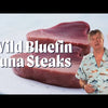 These bluefin tuna steaks arrive in packs of two, thick-cut for...